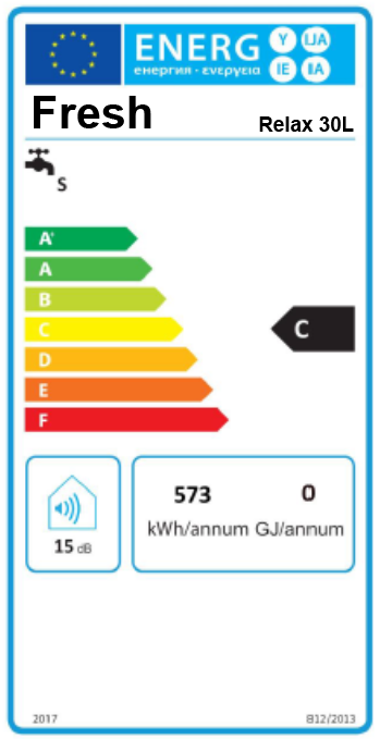 FRESH vandvarmer med stålkappe, 30 liter. 1500W - 230V. Stilbar termostat. Opvarmningstid 10-55 grader: 1 t. 15 minutter. 1/2" rørtilslutning nedad, centerafstand 100 mm. Mål: Højde 52 cm. Diameter 38,5 cm. Vægt tør: 12 Kg.